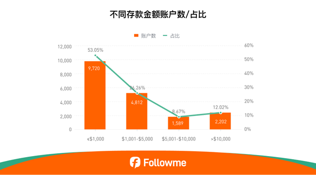 比拟之下,中高资金账户固然占比不高,但发扬出更高的资金牢固性与营业韧性。迥殊是$10,000以上的大额账户,正在举座资金滚动中动摇较小,外示出较强的危急处置技能与政策认识。