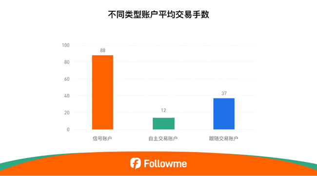 信号账户的均匀营业手数为 88 手,明显高于其他类型账户,外示出信号供应者更倾向高频、进步型政策的营业格调。而自决营业账户发扬相对较弱,仅为 12 手,举座操作频率较低,反响出这类用户正在政策遴选上更为涣散,且可以受限于时间技能与营业信念。