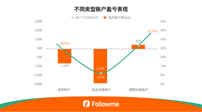 正在平台的三类账户中(自决营业、扈从营业、信号供应者),扈从营业账户发扬最为妥当,个中47.27%的账户达成净节余,均匀净收益为 322 USD。比拟之下,自决营业账户的均匀耗损为 3,236 USD,举座发扬远不足扈从账户。