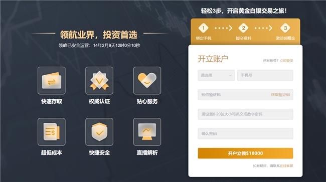 正在领峰贵金属官方网站可下载主流的MT4贸易软件,用激活后的账户登录,就能随时随地查看黄金行情、实行贸易操作。新手初期能够先熟练软件界面,不必急于下单。