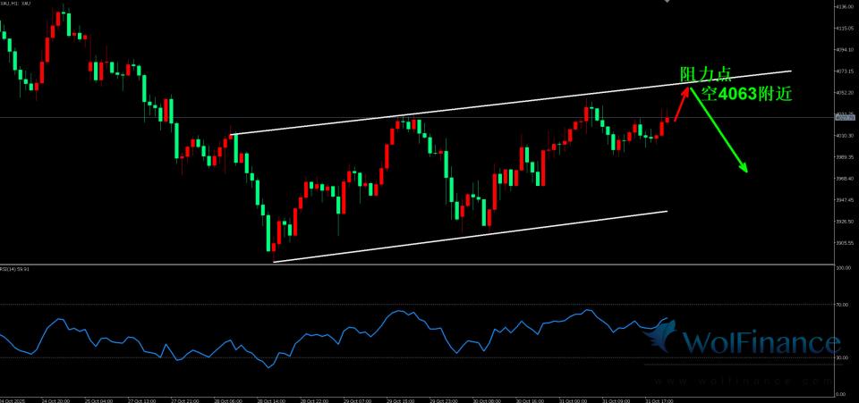 主见逻辑:1. 金价4063近众单主见,止损4073, 止盈4000--3990左近 ,跟踪止损300点。