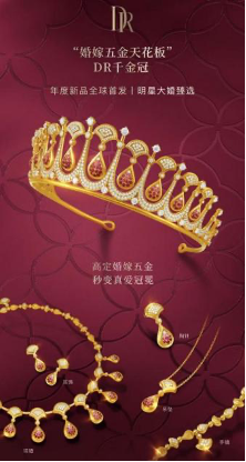 DR婚嫁五金的每一套作品均由工匠纯手工打制,从花丝工艺到构造拼装,历经数十道工序,凝集匠心与工夫。这种对极致工艺的寻觅,使得DR令媛冠不只是一套时尚贵气的五金婚饰,更是顶级的浪漫,照应了当下消费者对“精神价钱”与“审美品位”的双重需求。