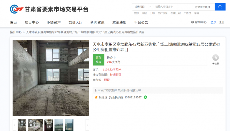 今天,受委托,甘肃省产权来往所集团股份有限公司正式启动天水市麦积区商埠道东42号新亚购物广场二期南侧1幢2单位13层公寓式办公用房的公然推介就业,面向社会广大搜集投资人。此次推介的优质物业依赖重点区位、完整配套、灵巧空间等众重上风,为企业进展与贸易投资供应了优质拔取,希望进一步激活麦积区商务贸易进展...