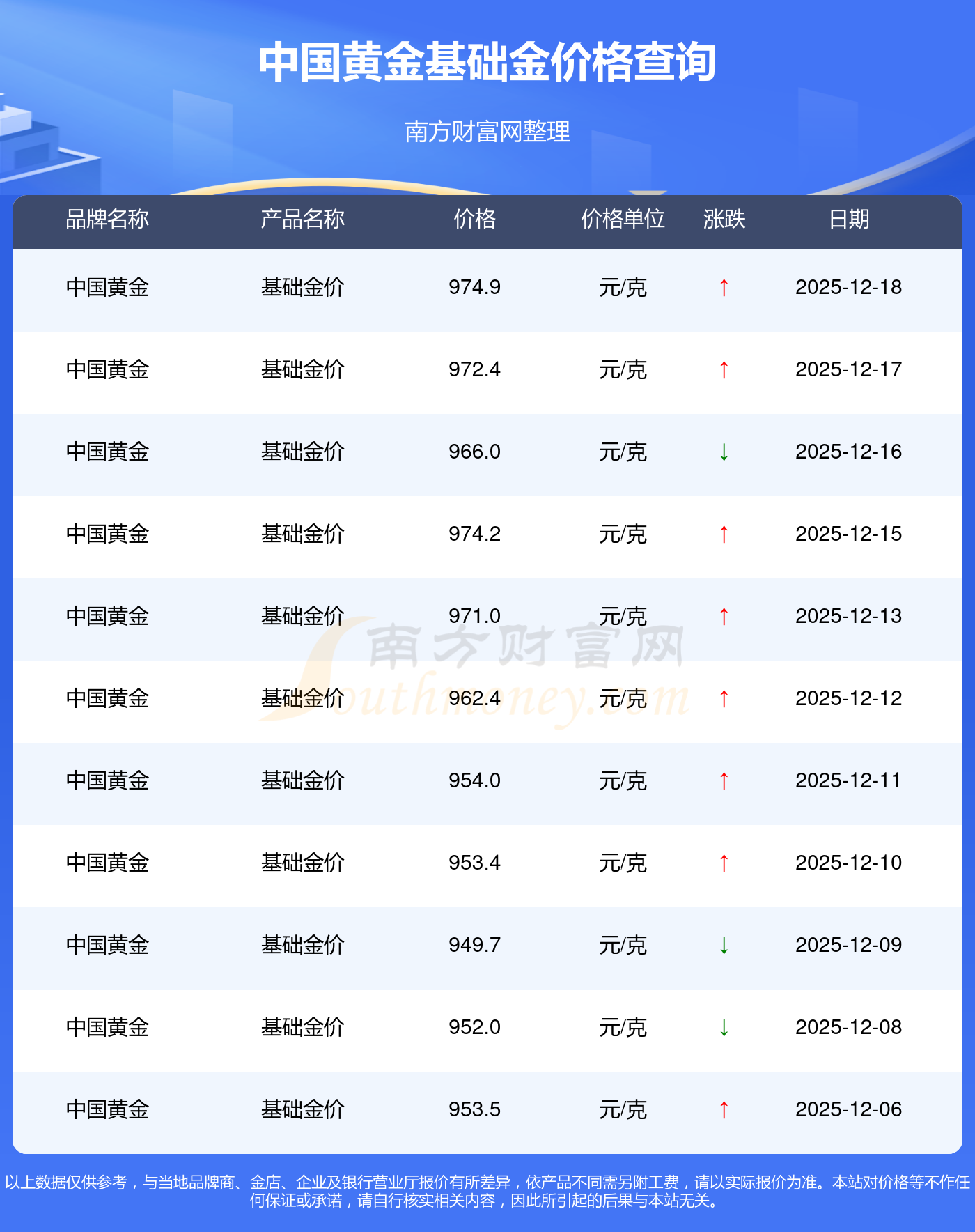 2025年12月18日今日黄金价钱的价钱是众少钱一克?黄金价钱最新查问