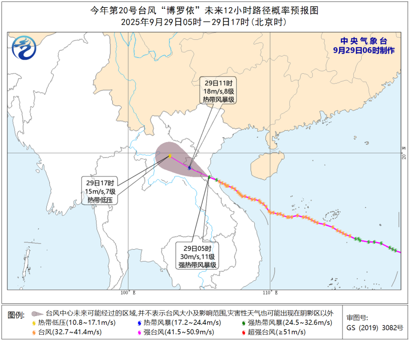 图2 台风“博罗依”来日24小时大风预告图(9月29日08时-30日08时) 估计,9月29日至10月6日,华西地域、黄淮等地众降雨,甘肃东部、陕西中南部、四川东部、重庆西部和北部、湖北西部、河南、山东中南部、苏皖中北部等地将有中到大雨,局地有暴雨或大暴雨。 中间现象台9月29日06时公布暴雨蓝色预警:估计,9月29日08时至30日08时,四川东部、重庆北部、陕西东南部、湖北西北部以及海南岛南部、广西西部、云南东南部、贵州南部等地有大到暴雨,此中,广西西南部、云南东南部等地局限地域有大暴雨(100~180毫米)(睹图3)。