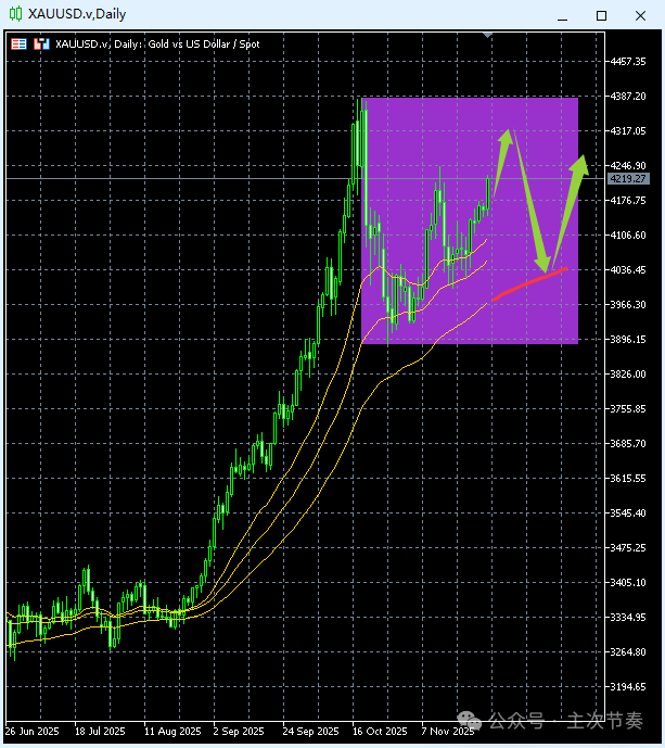 上周黄金进入日线图级别b浪反弹,但跟着上周五黄金的大跌,现正在要思量的是恐怕正正在进入c浪下跌。但这并不是独一采取,单从黄金来看,现正在照旧可能是b浪的内部子浪(例如b浪内部走小abcde,那么现正在就处正在b-d,图中黄色箭头标注,动作备选计划)。只是同时参考白银,可能看到白银日线图是前期高点受阻转跌,那么白银仍然进入c浪的恐怕性很大。于是是以会优先思量黄金也正在进入c浪,即使是c浪,根据a=c的准则,那么此次回调就会跌破日线图均线编制,从而演酿成周线图级此外回调,时候和幅度都将以周线图从新量度。这是要重心体贴的兴盛蜕变。Update: 2025-11-30