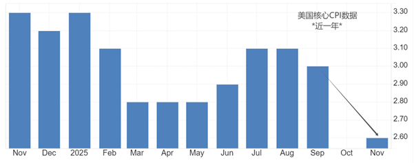 史籍数据数据看,美邦10月中央CPI年率缺失,11月份为2.6%,明显低于9月份的3%,通胀率有回归至2%温和通胀准则的或许。纽约联邦贮藏银行行长约翰·威廉姆斯体现:“通胀方面的上行危机则有所消浸”,凭借是10月份和11月份的CPI数据降低。假如12月份CPI数据如预期的2.7%,意味着通胀降低是墟市举动,而非政府停摆导致。