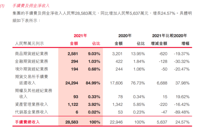 分生意处境来看,正在期货经纪生意方面,截至2021岁晚,弘业期货的客户权柄(未包含股票股权)为黎民币59.31亿元,较2020岁晚客户权柄黎民币42.88 亿元伸长38.31%。代劳期货生意发生的手续费及利钱收入为黎民币3.49亿元,较2020年同期的 黎民币2.79亿元伸长25.09%。