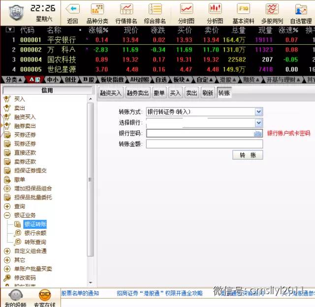 现金只可通过银行卡进出,即普遍账户里的现金须要先转回干系银行卡,随后通过融资融券账户中的转账性能转入现金,提议普遍账户与融资融券账户运用统一张银行卡。银证转账金额及时到账可用,担保品划转T日提交,当日冻结,卖出须要优秀行撤单操作,T+1到信用账户,可能卖出子担保品股票,亦可用于融资融券操作。普遍账户股票划转之后本钱价会默认造成划转当天业务收盘价,可提挺进行纪录并正在融资融券账户实行编削