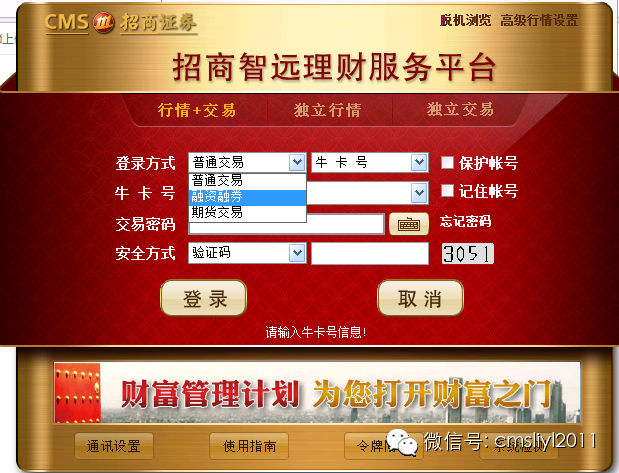 我司智远理财任事平台同时援救普遍业务、融资融券、期货业务,可正在登录格式实行切换