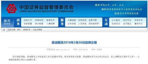 证监会呈现,经邃密绸缪,原油期货上市的各线职责一经基础告竣。归纳探求各方要素,原油期货将于2018年3月26日,正在上海期货生意所子公司——上海邦际能源生意中央挂牌生意。