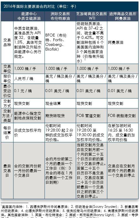 三是中质含硫原油是我邦及周边邦度进口原油的厉重种类,遵照海合总署宣告的统计数据,我邦2016年进口原油3.81亿吨,个中来自中东地域的原油1.83亿吨,占比高达49%,造成中质含硫原油的基准价值有利于鞭策邦际原油商业的生长。可交割油种席卷阿联酋迪拜原油、上扎库姆原油、阿曼原油、卡塔尔海洋油、也门马西拉原油、伊拉克巴士拉轻油,以及中邦得胜原油。