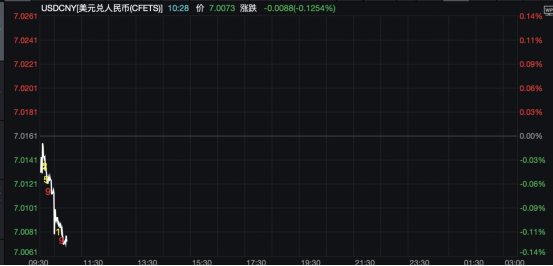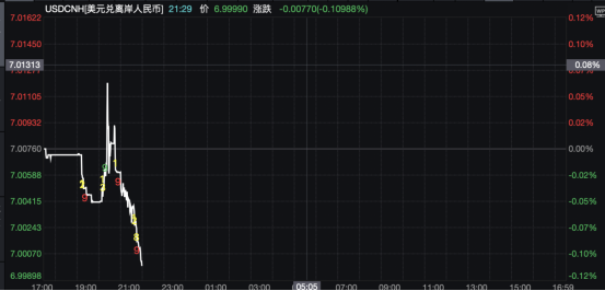 Wind数据显示,截至25日10:29,离岸群众币对美元汇率报6.9999元,较前收盘价上涨77个基点,盘中最高报6.9981元,升破7元合口。